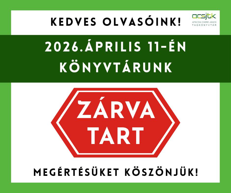 Értesítjük Önöket, hogy az Apáczai Csere János tagkönyvtár 2026. április