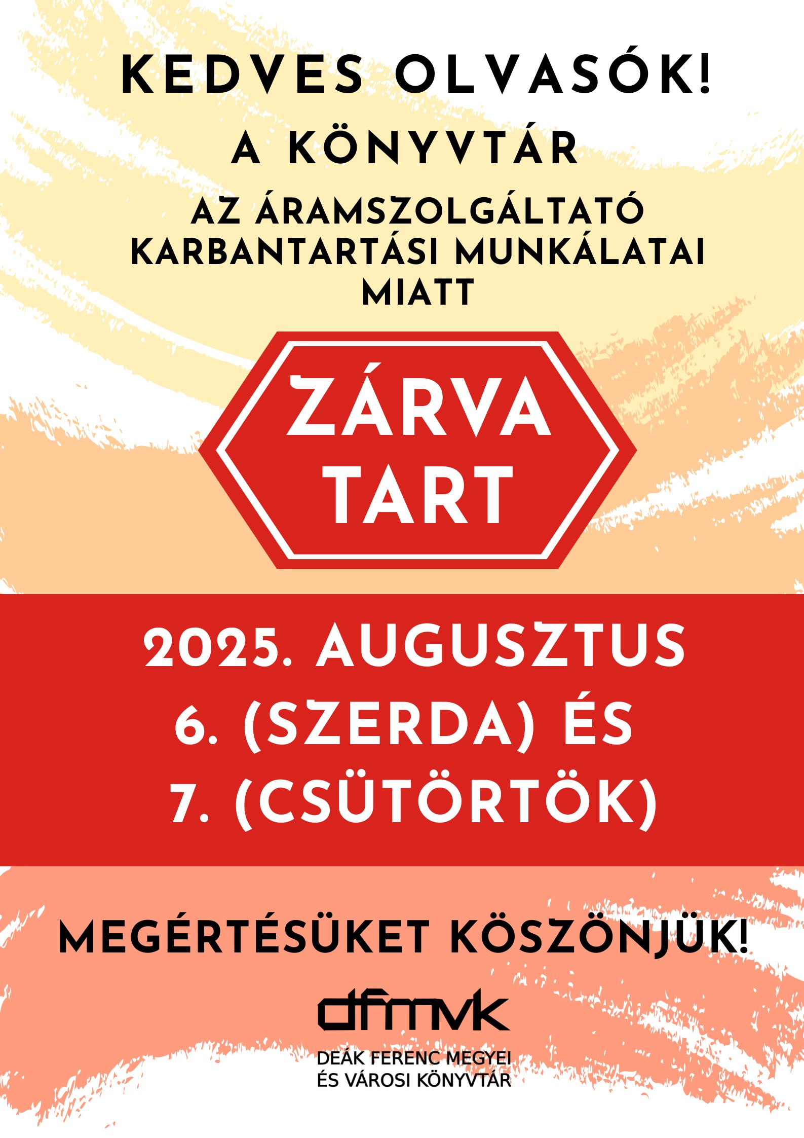 *A könyvtár*az áramszolgáltató karbantartási munkálatai miatt*2025.