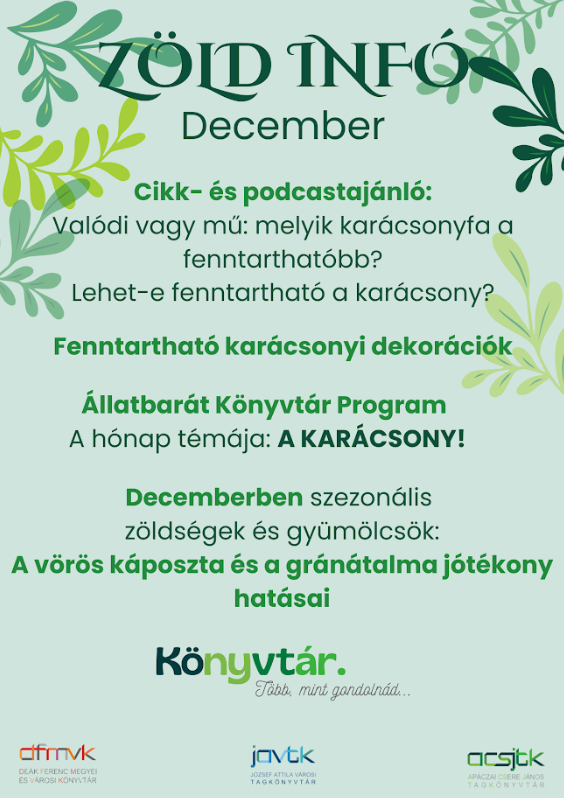 [DFMK-Hirlevel] Zöld könyvtári hírek