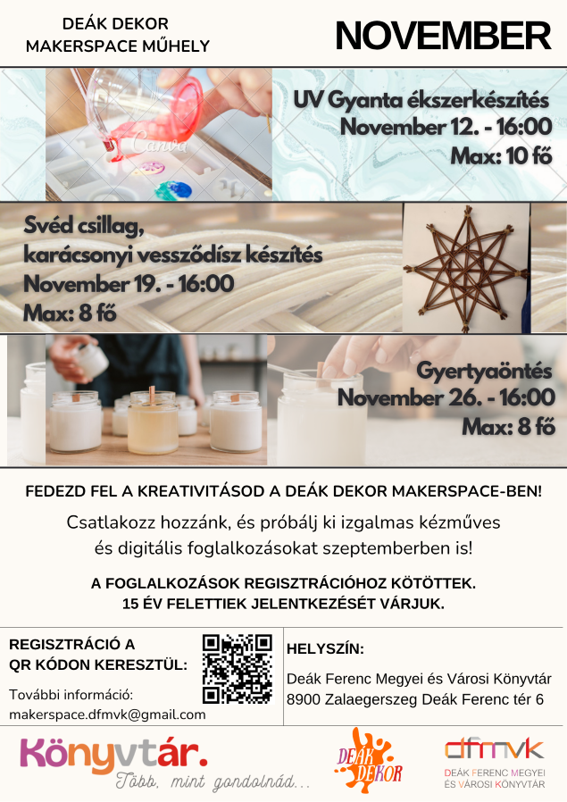A*Deák Dekor Makerspace Műhely*ben 15 év feletti érdeklődők számára