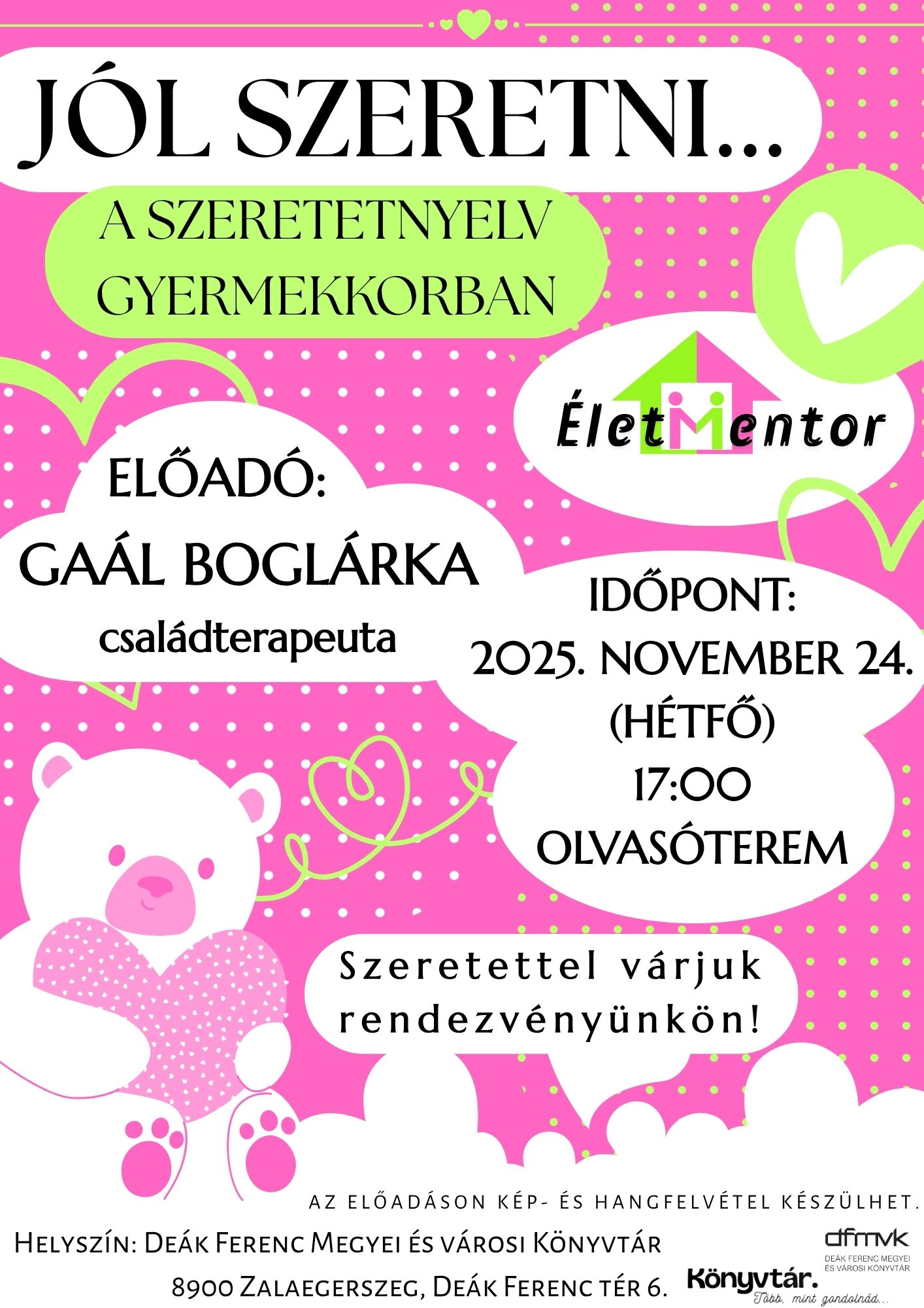 szeretni… - Szeretetnyelv a gyermekkorban/*. Előadó: *Gaál Boglárka*
