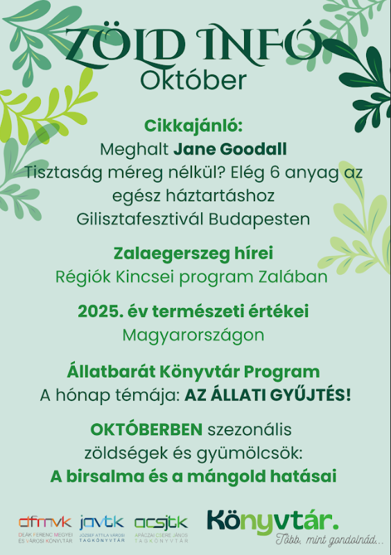 Az októberi Zöld Infó a mellékletben olvasható.