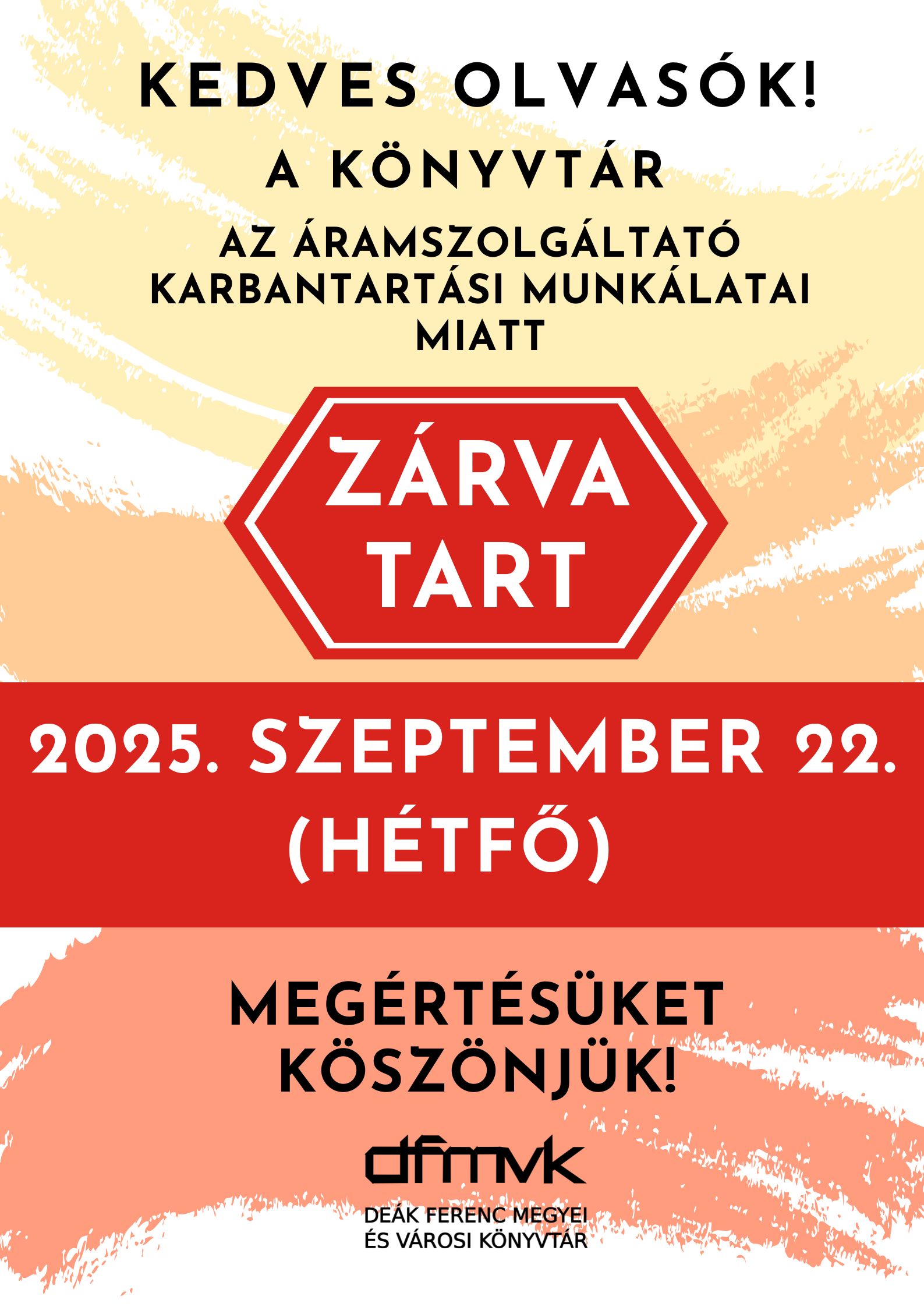 miatta a*könyvtár zárva* tart. Megértését köszönjük.