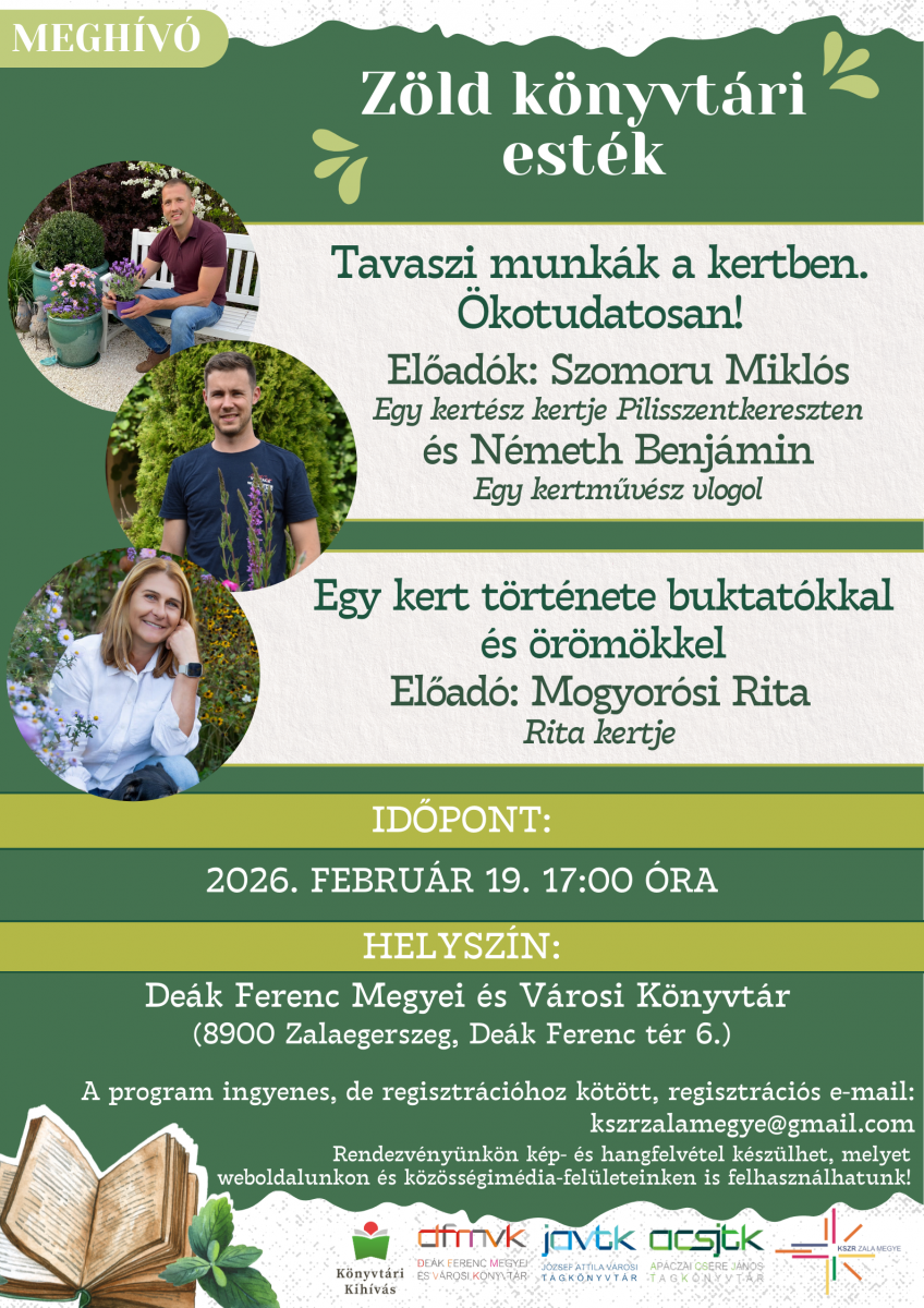 *Zöld könyvtári esték*programsorozatunk következő alkalmán *Szomoru