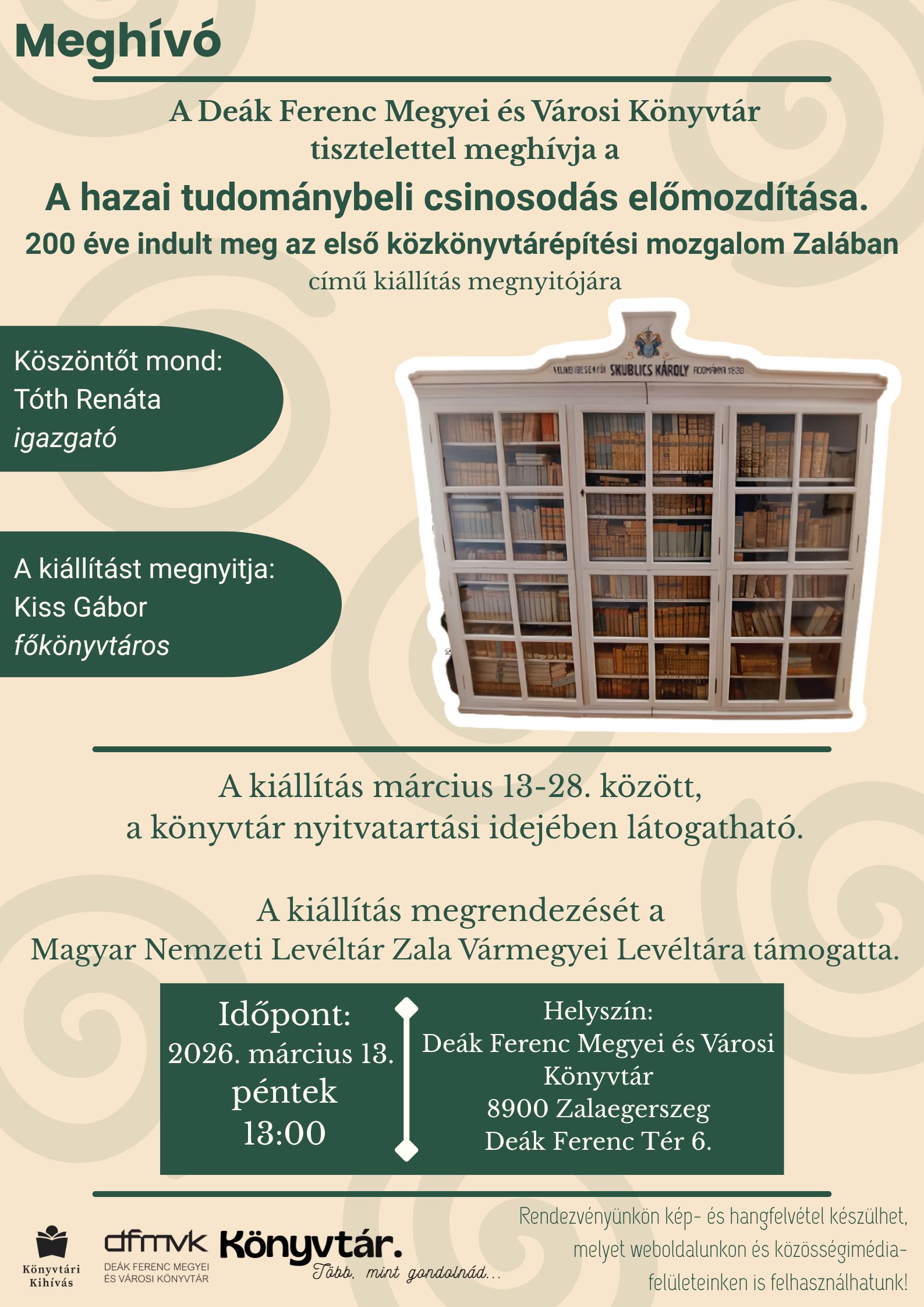 első közkönyvtárépítési mozgalom Zalában*című *kiállítást -*