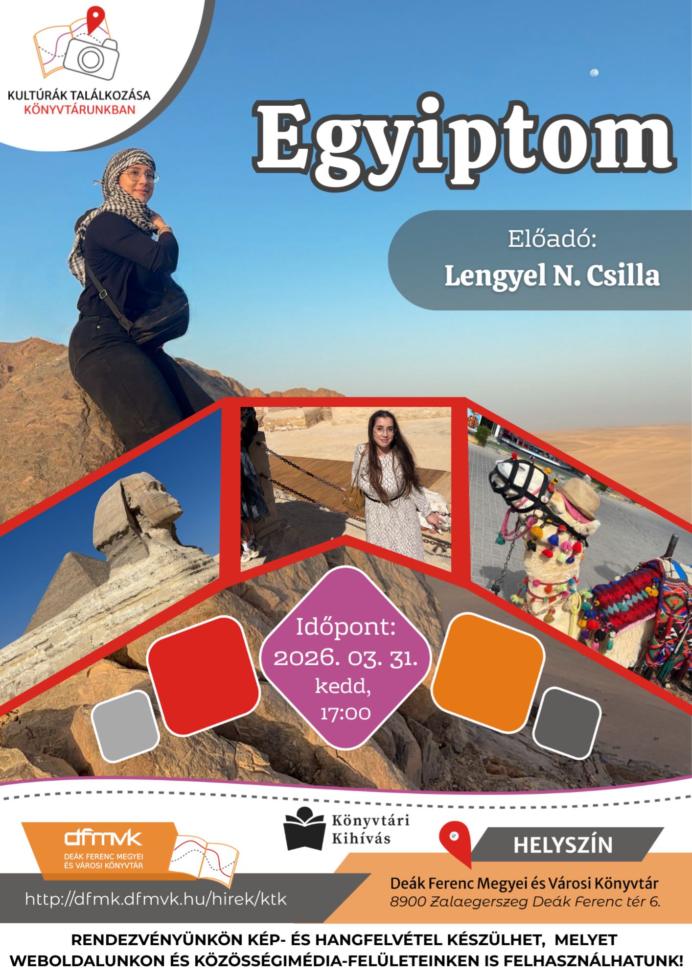 alkalmán *Egyiptom*i útjáról**tart beszámolót *Lengyel N. Csilla.*