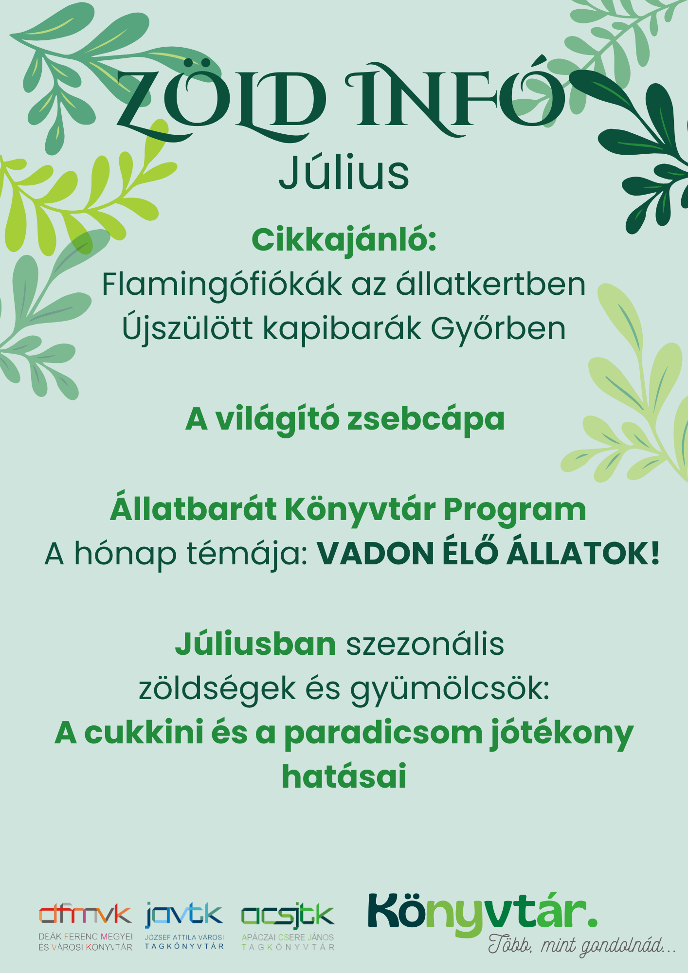 A júliusi Zöld Infó a mellékletben olvasható.
